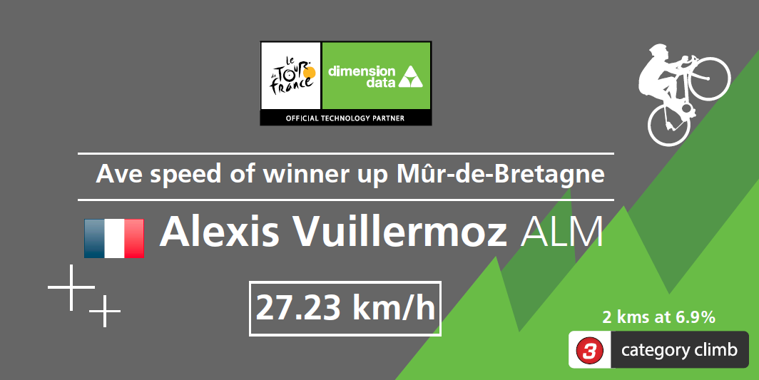 Interesting... the tour data first reported that the winner on the stage climbed the Mur at 39km/h but pretty quickly corrected that to 27.23km/h. Beta... still in beta but I love the concept.