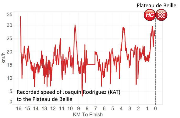 Rodriguez's speed up the mountain on his way to the win